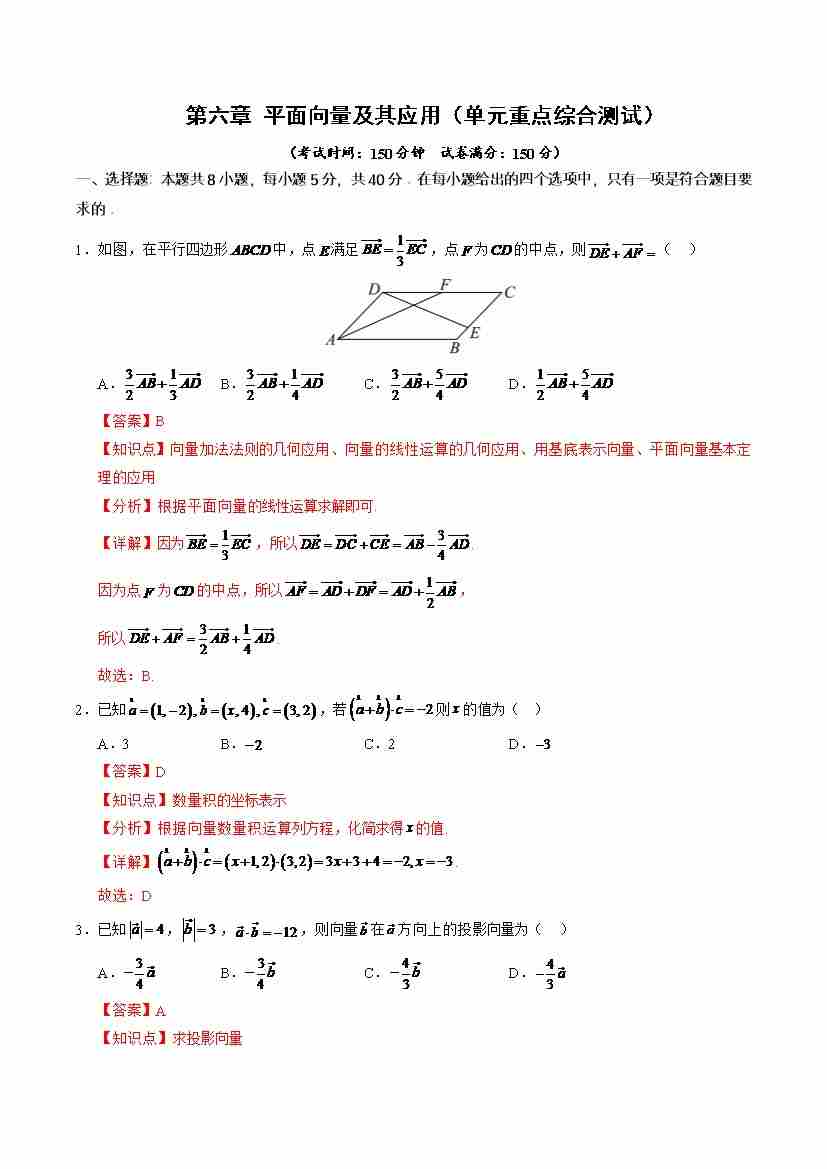 第六章平面向量及其应用 (单元测试)(解析版)-(人教A版2019必修第二册)