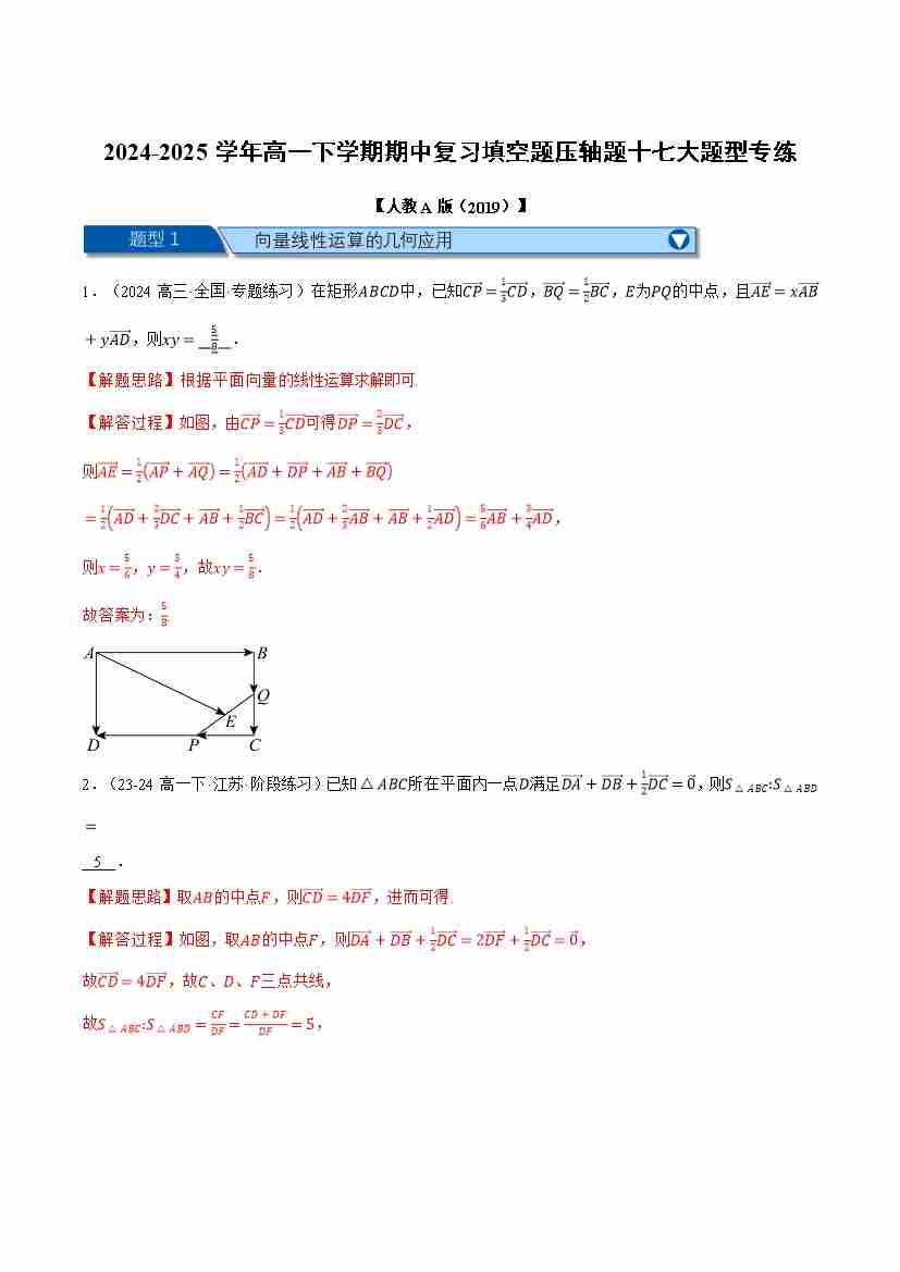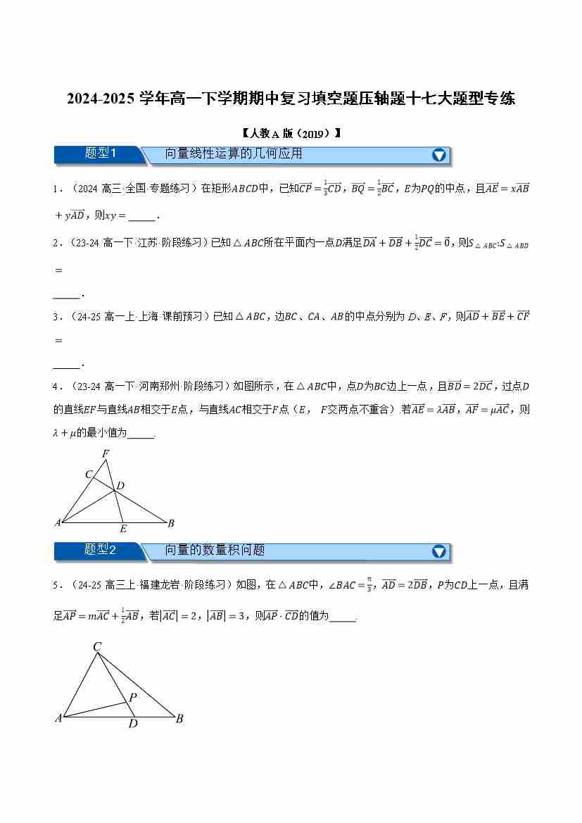 高一下学期期中复习填空题压轴题十七大题型专练(学生版)