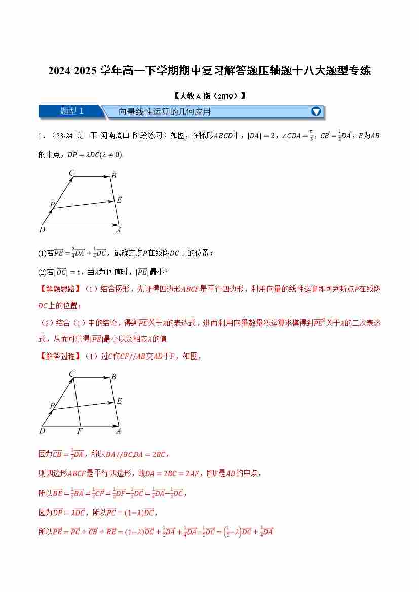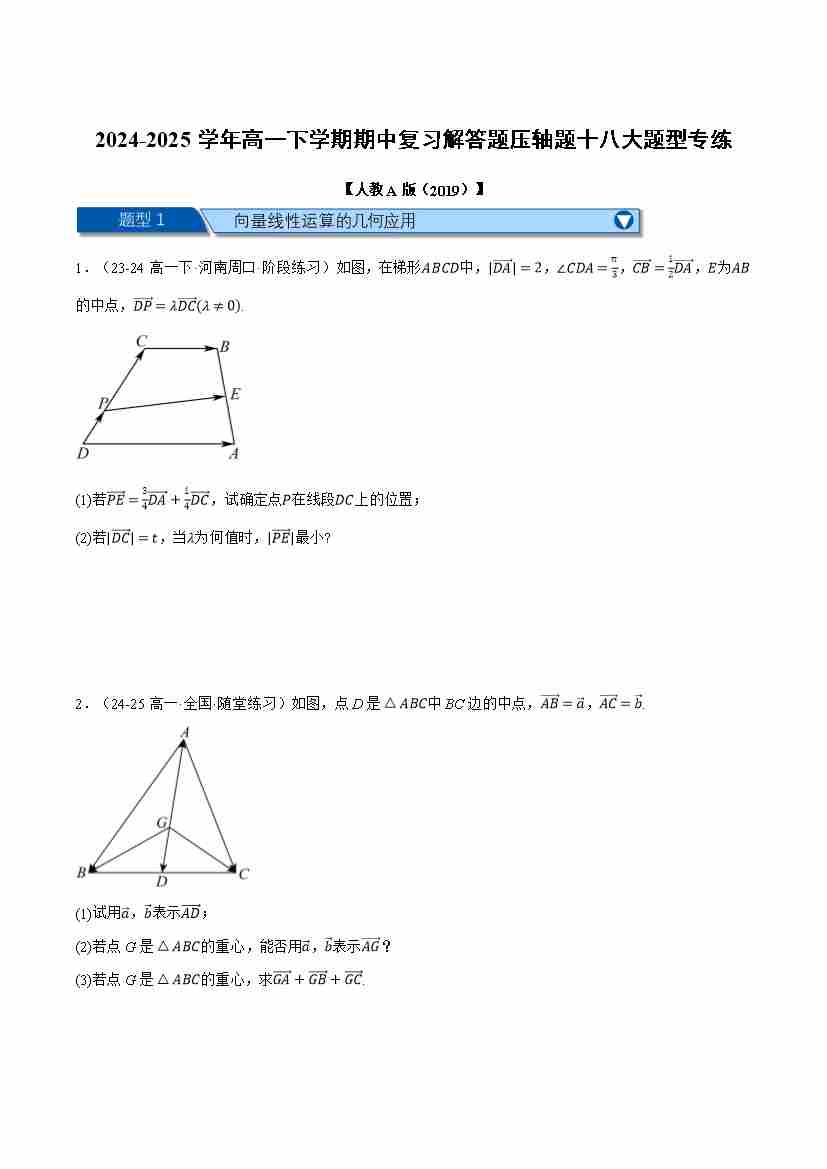 高一下学期期中复习解答题压轴题十八大题型专练(学生版)