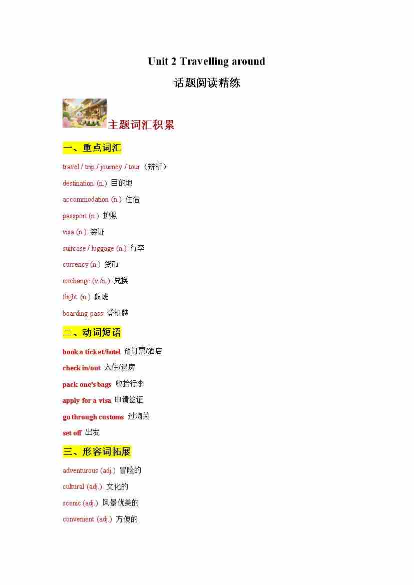 Unit 2 Travelling around(话题阅读精练)英语人教版2019必修第一册(学生版)