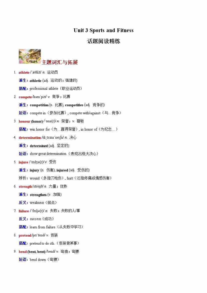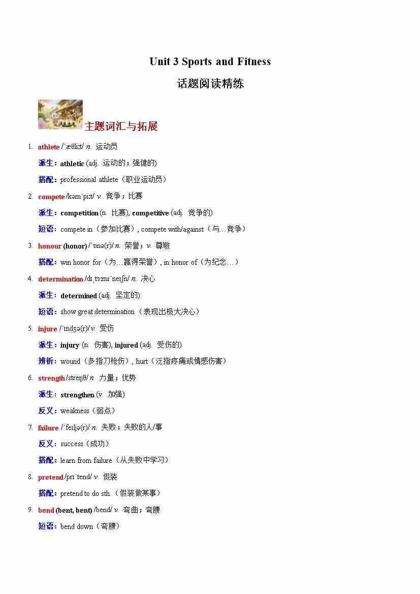 Unit 3 Sports and Fitness(话题阅读精练)英语人教版2019必修第一册(学生版)