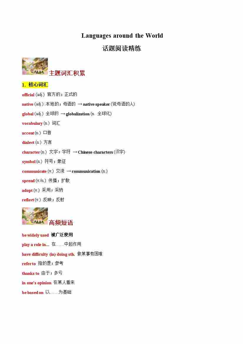 Unit 5 Languages around the World(话题阅读精练)英语人教版2019必修第一册 (学生版)