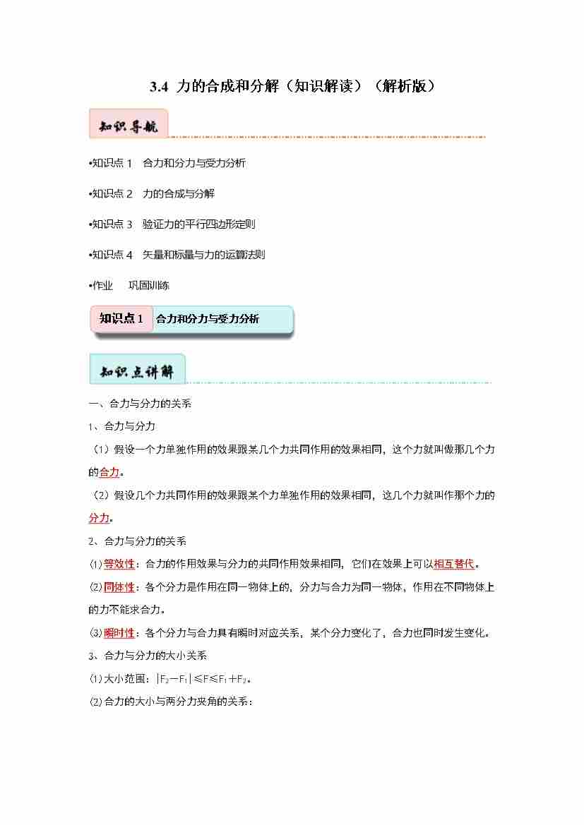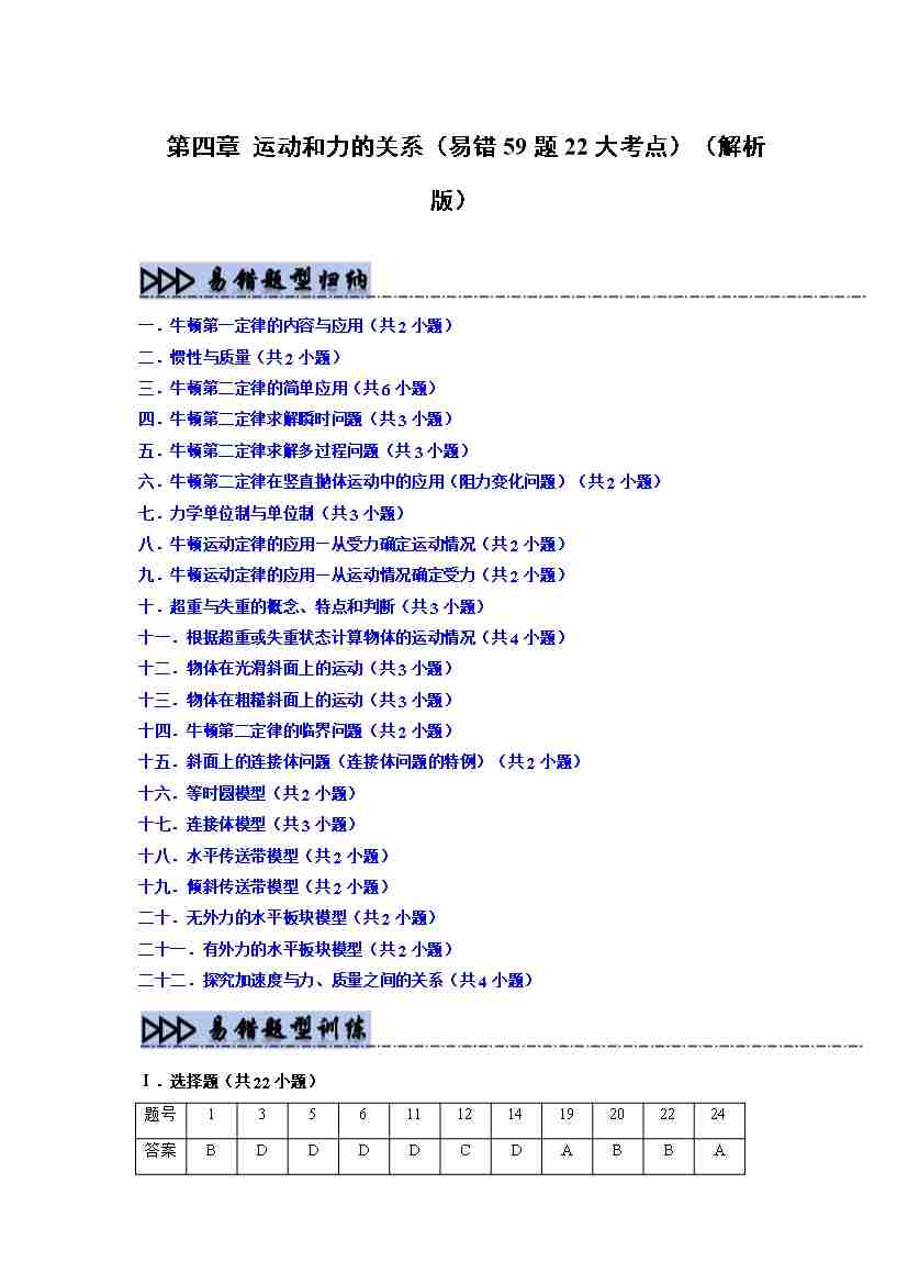 第4章 运动和力的关系(易错59题22大考点)(教师版)