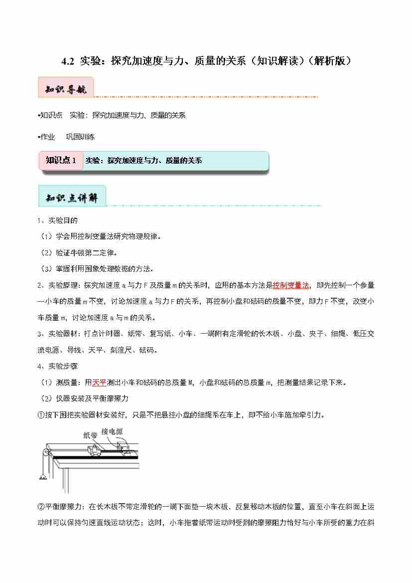 4.2 实验:探究加速度与力、质量的关系(知识解读)(学生版)