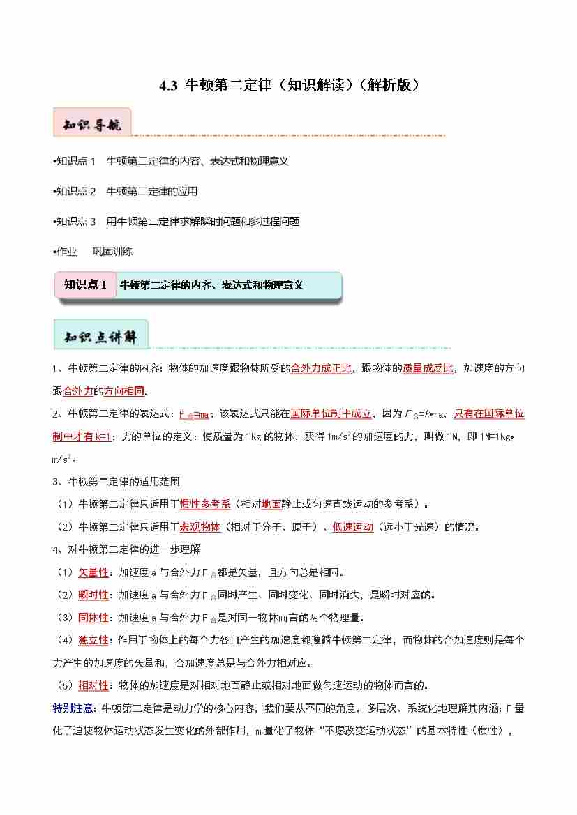 4.2 实验:探究加速度与力、质量的关系(知识解读)(教师版)