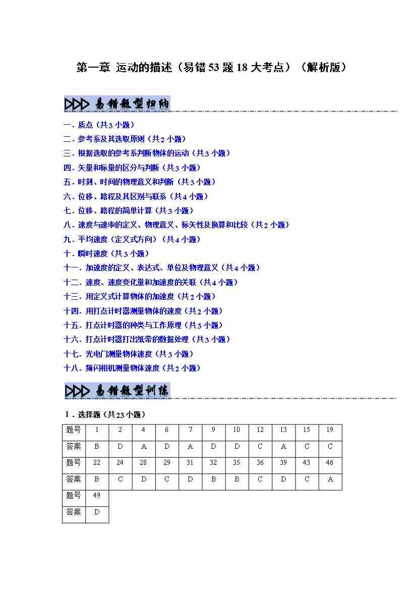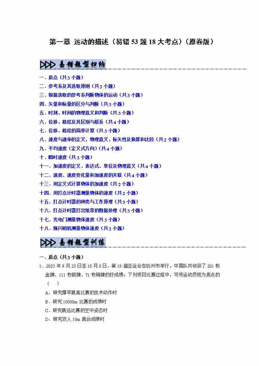 第1章 运动的描述(易错53题18大考点)(教师版)