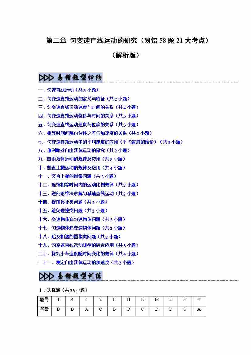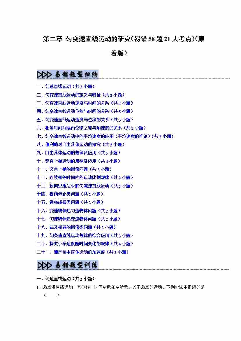 第2章 匀变速直线运动的研究(易错58题21大考点)(教师版)