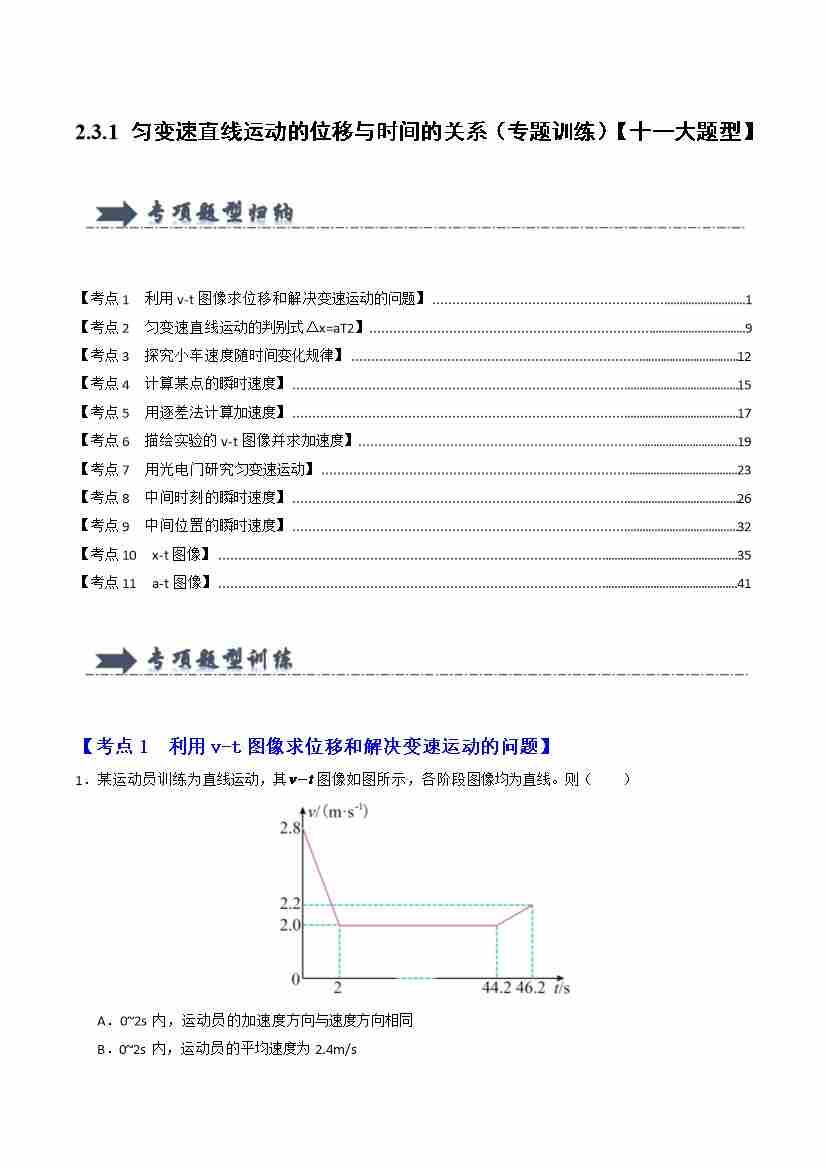 2.3.1 匀变速直线运动的位移与时间的关系(专题训练)(十一大题型)(教师版)
