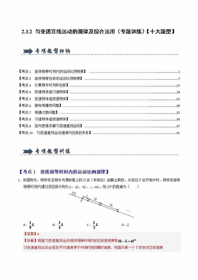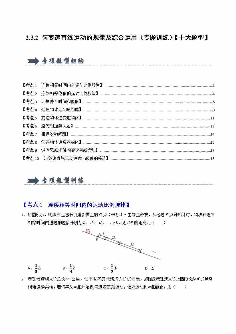 2.3.2 匀变速直线运动的规律及综合运用(专题训练)(十大题型)(学生版)