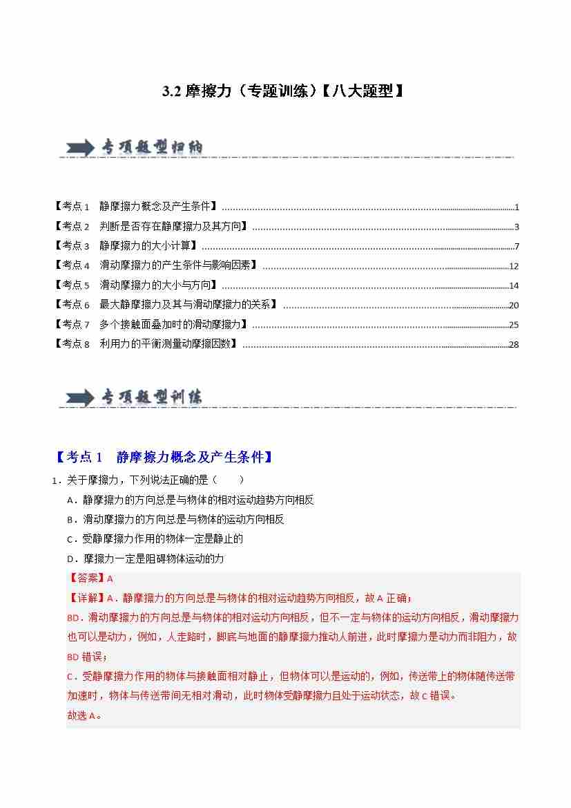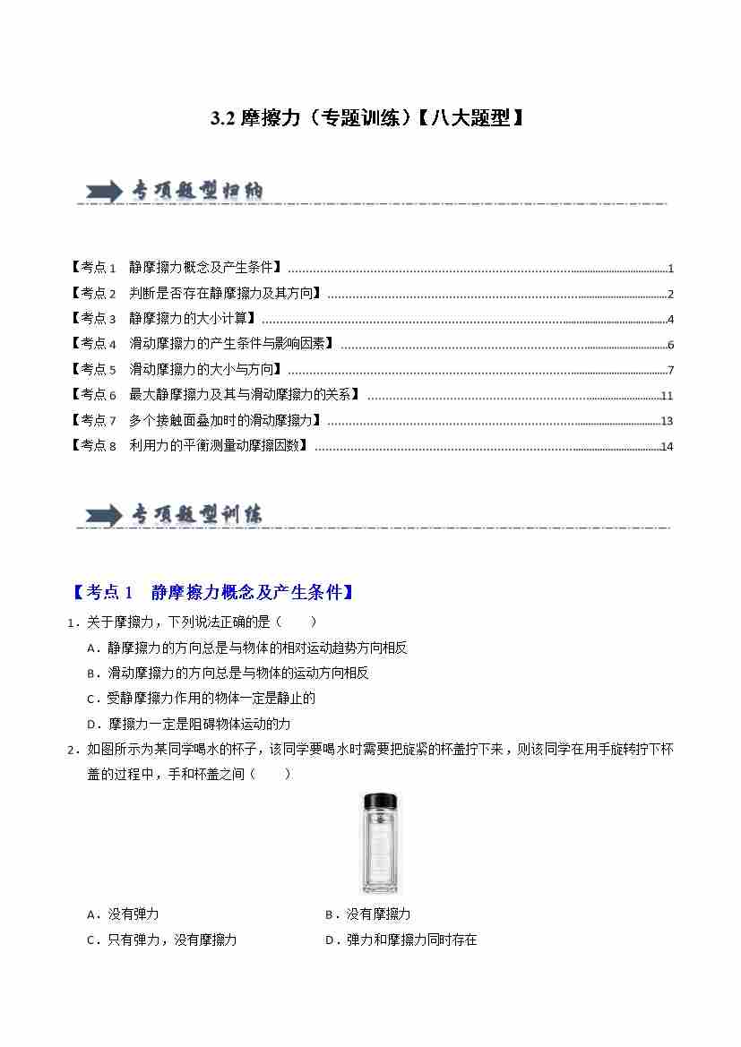 3.2摩擦力(专题训练)(八大题型)(学生版)
