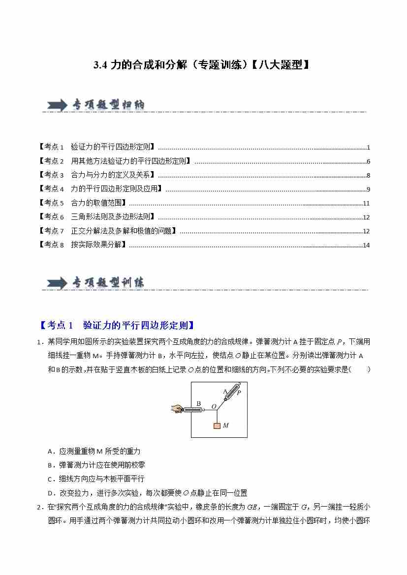 3.4力的合成和分解(专题训练)(八大题型)(学生版)