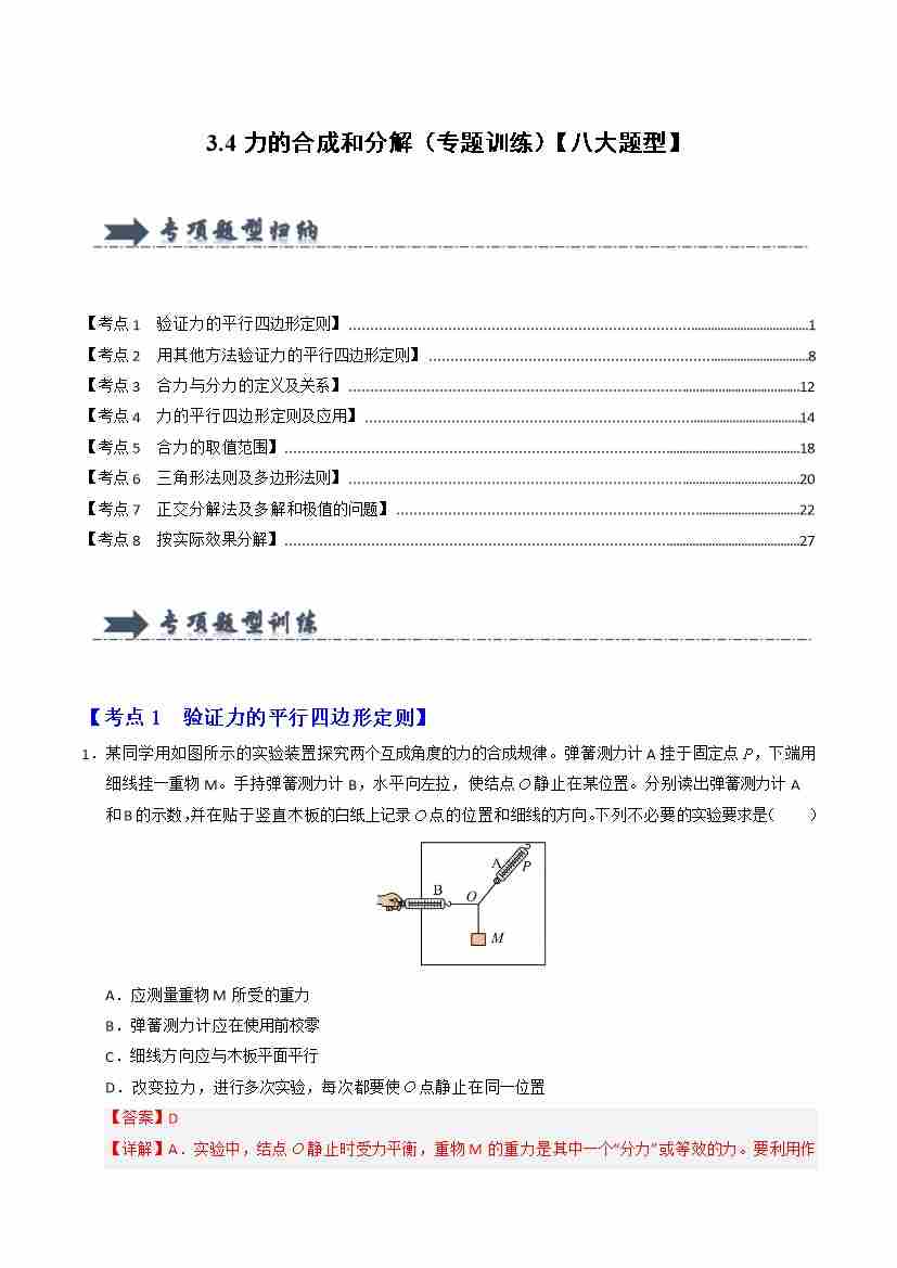 3.4力的合成和分解(专题训练)(八大题型)(教师版)