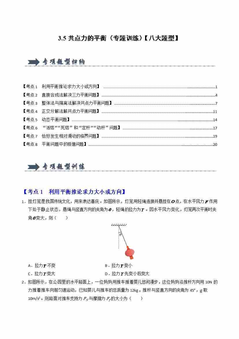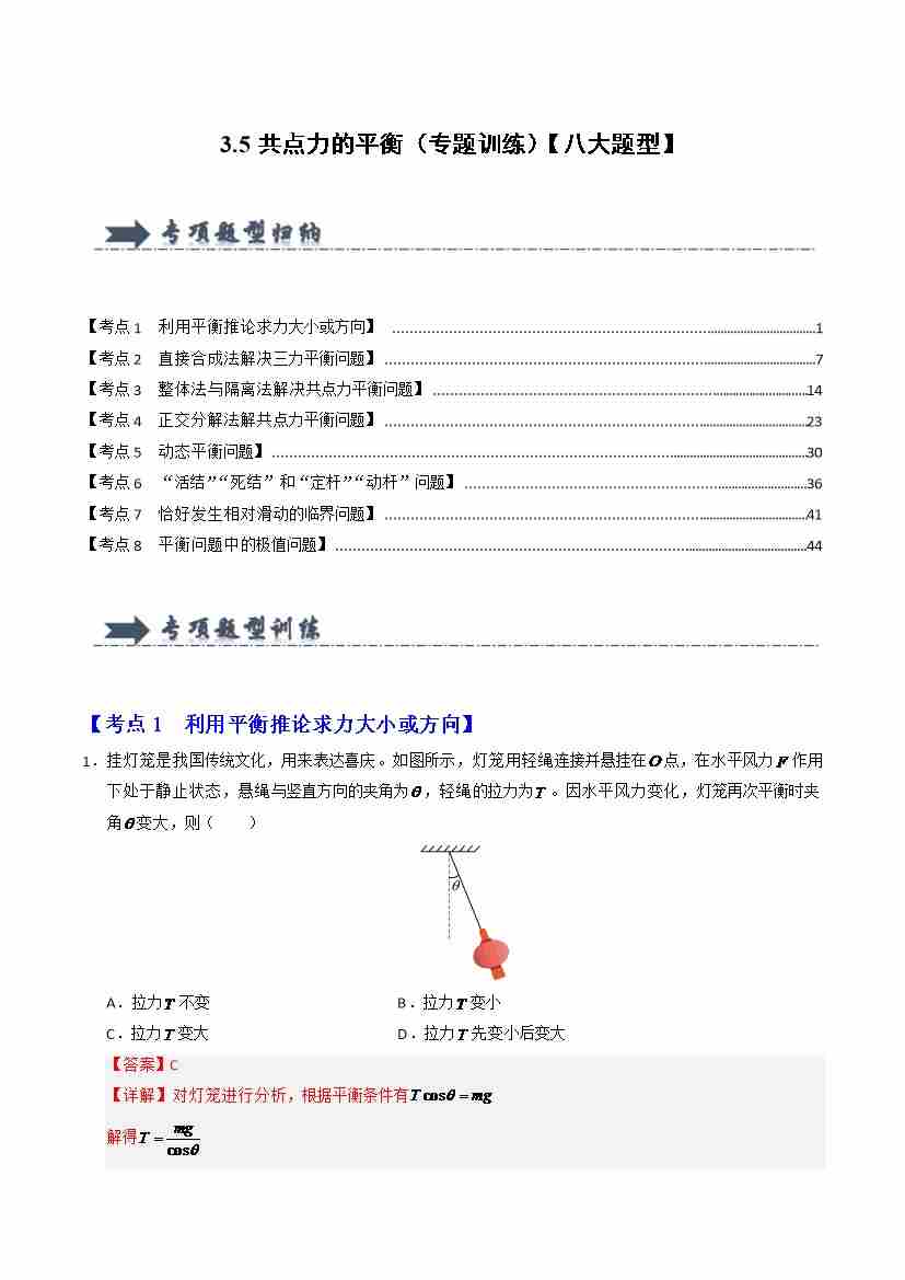 3.5共点力的平衡(专题训练)(八大题型)(学生版)