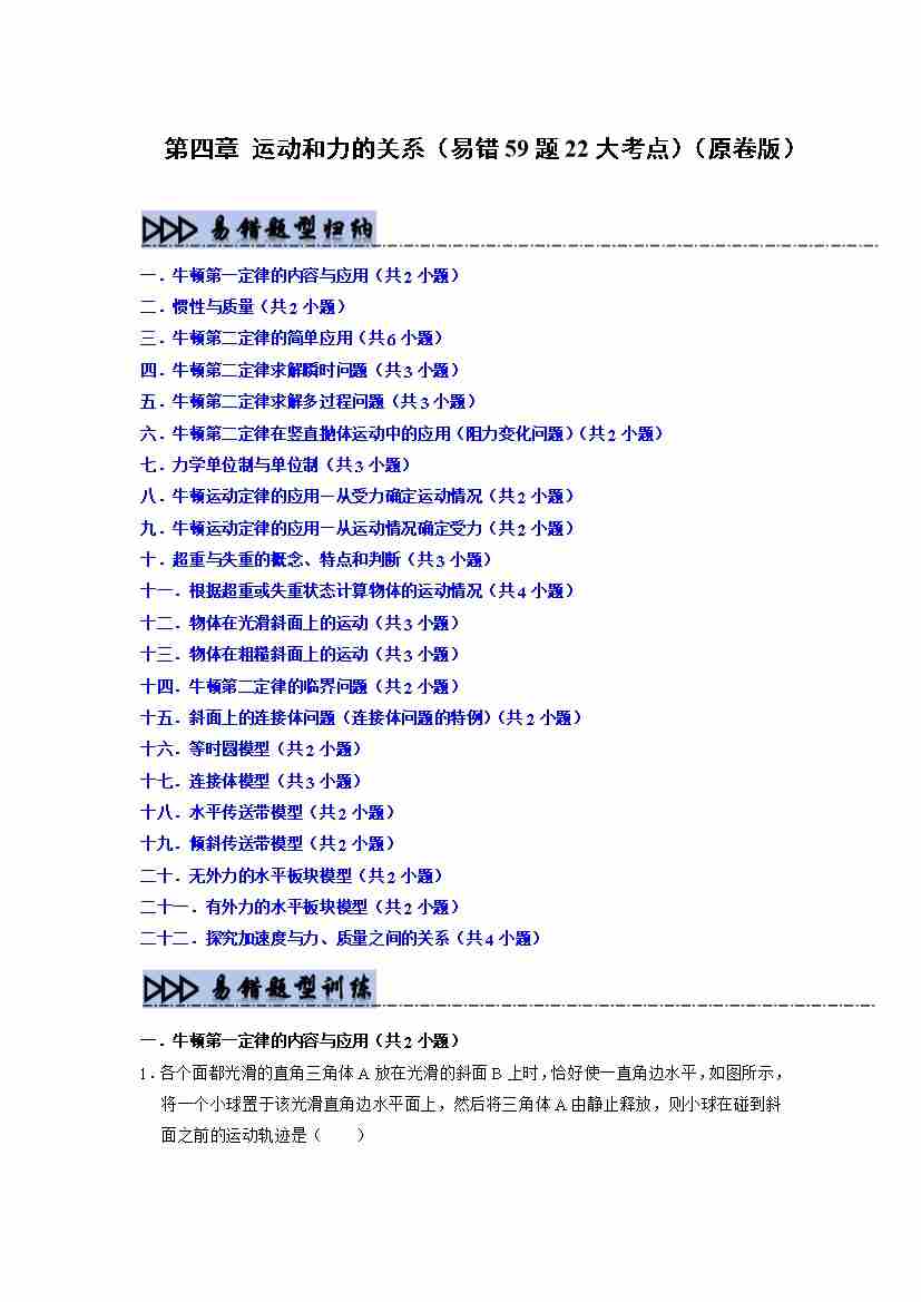 第4章 运动和力的关系(易错59题22大考点)(学生版)