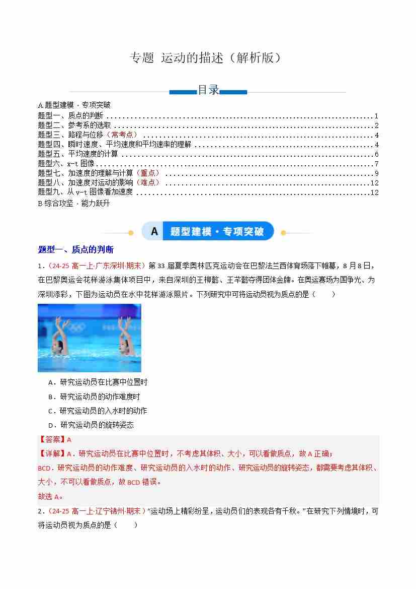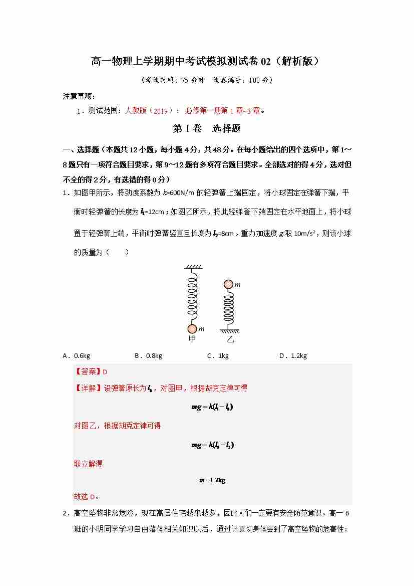 高一物理上学期期中考试模拟测试卷02(教师版)