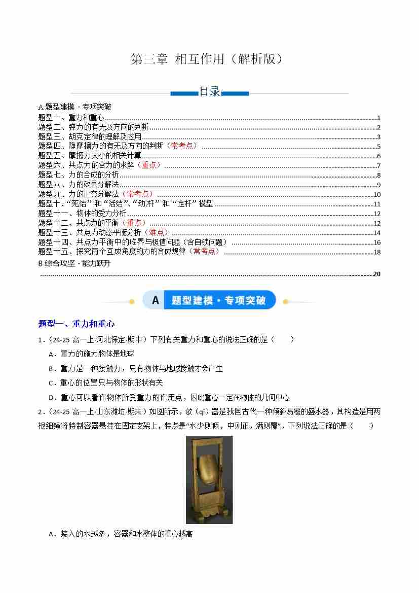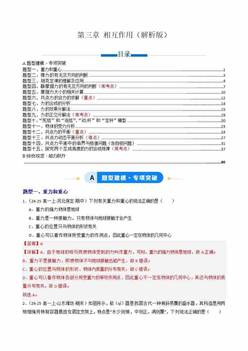 第三章 相互作用——力(举一反三单元试·提升卷)(学生版)