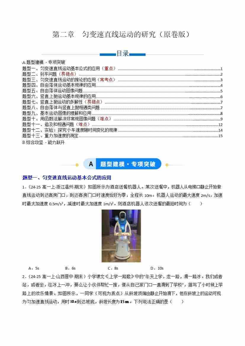 第二章 匀变速直线运动的研究(专项训练)(学生版)