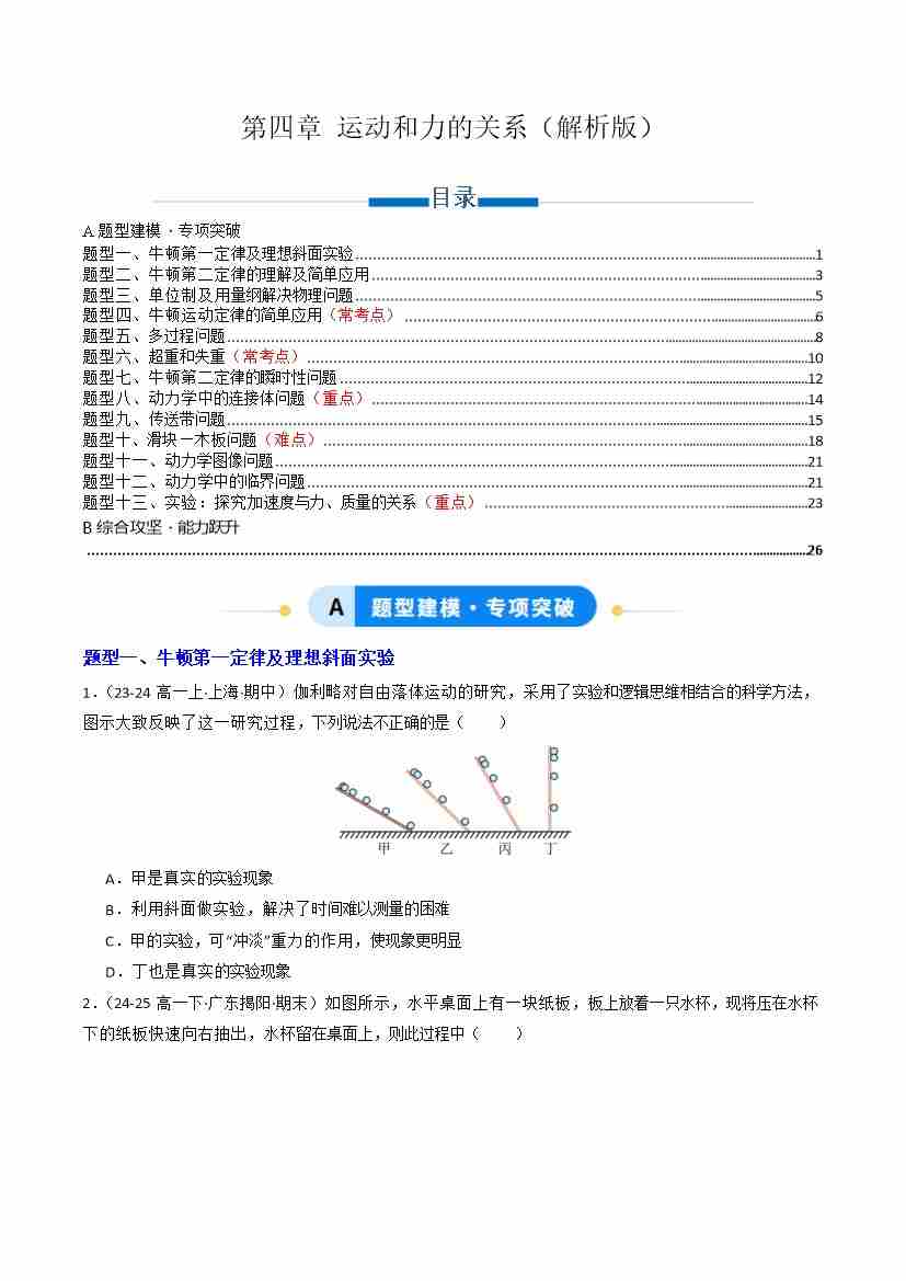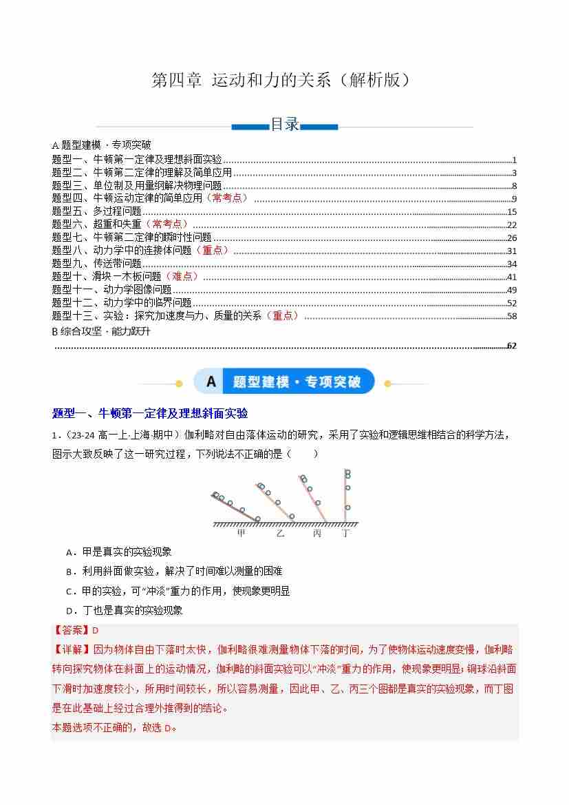 第四章 运动和力的关系(举一反三单元测试·提升卷)(学生版)