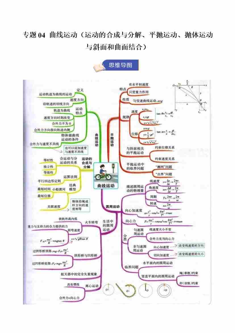 专题04 曲线运动(运动的合成与分解、平抛运动、抛体运动与斜面和曲面结合)(期末复习知识清单)(原卷版)