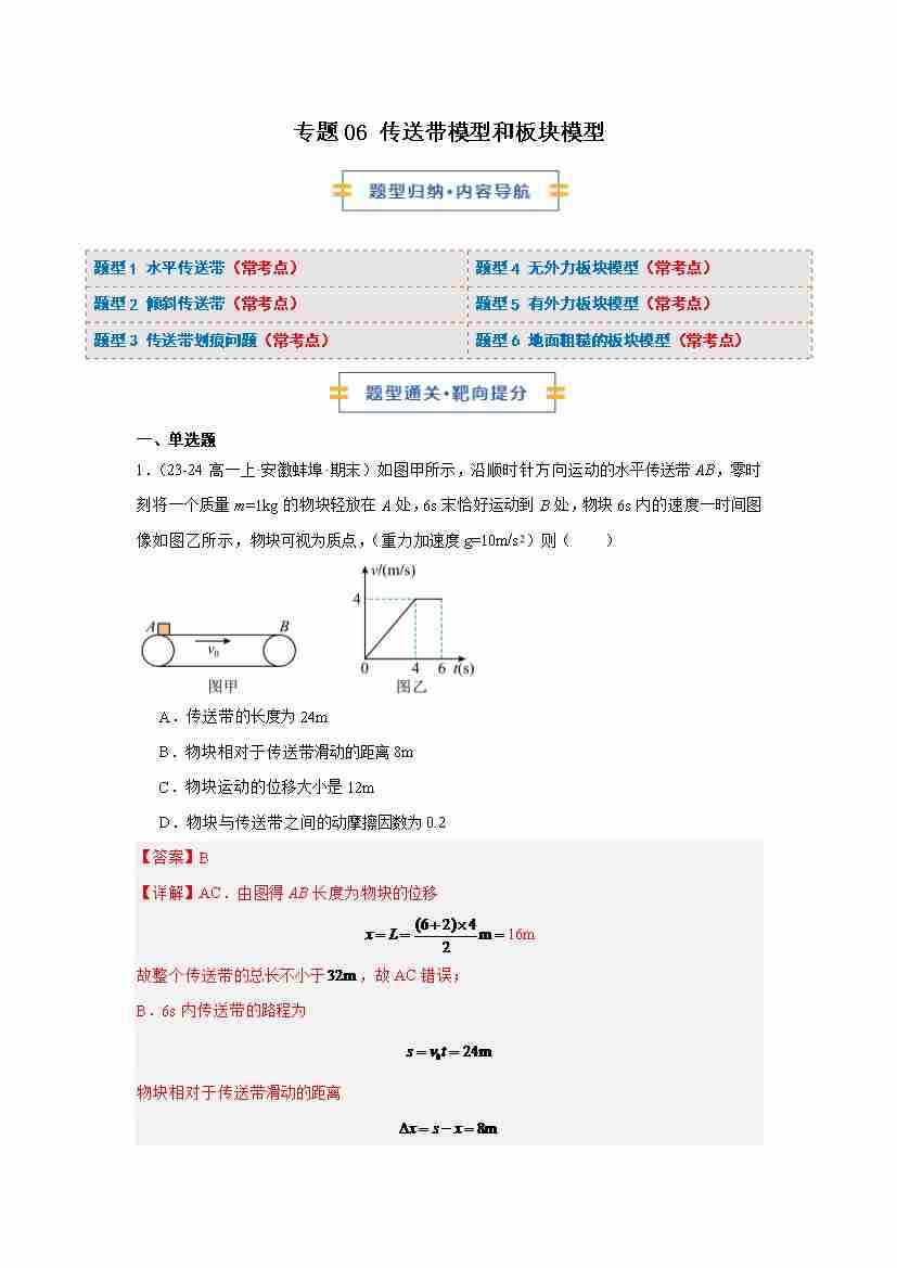 专题06 传送带模型和板块模型(期末专项训练)(解析版)