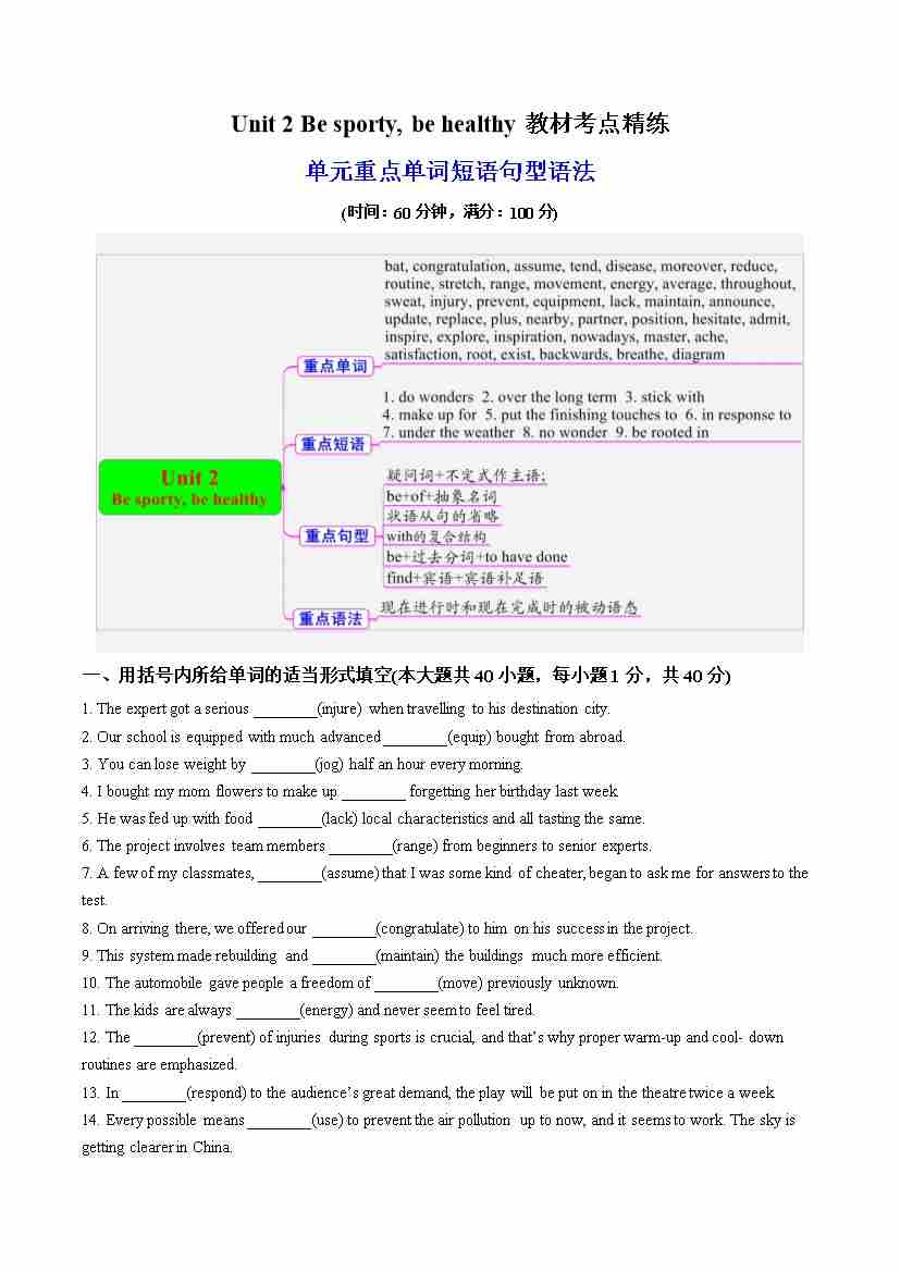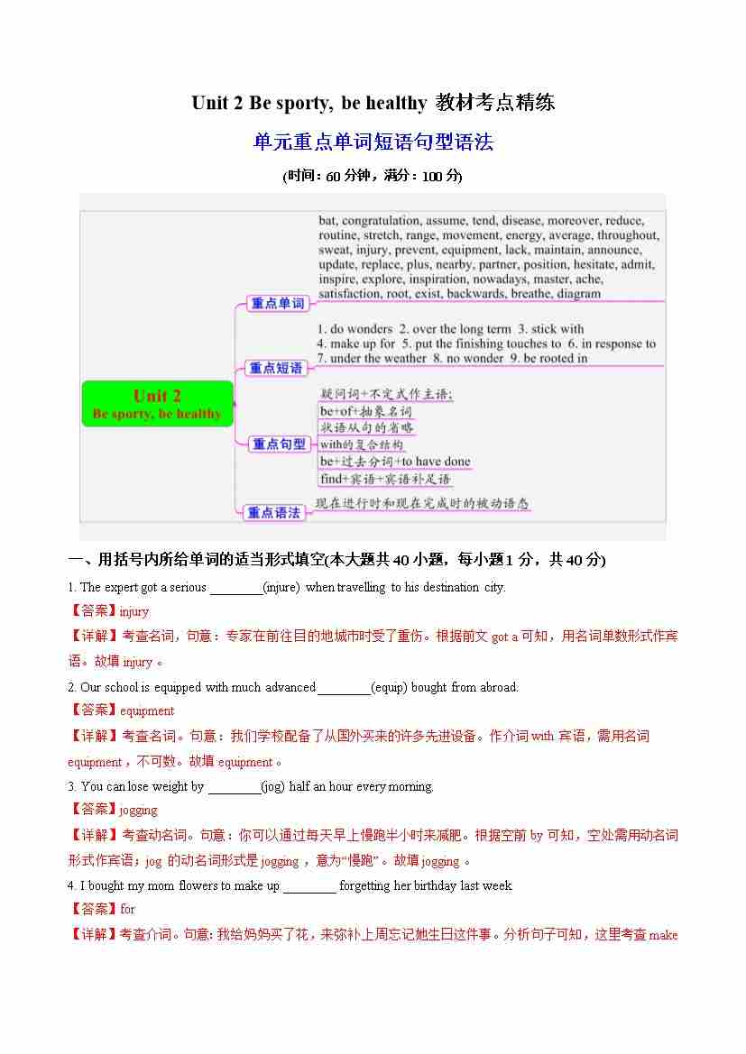 Unit 2 Be sporty, be healthy l 单词短语句型语法(教材考点精练)(教师版)