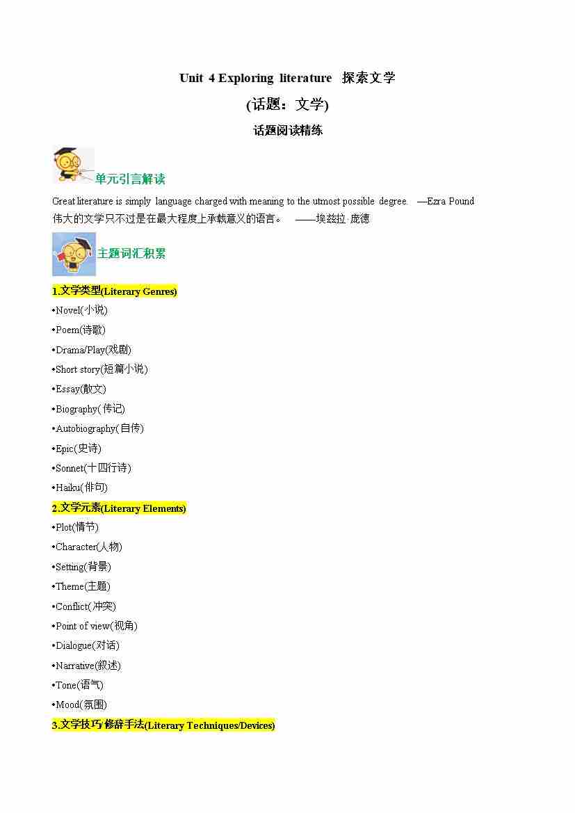Unit 4 Exploring literature(话题阅读精练)(学生版)