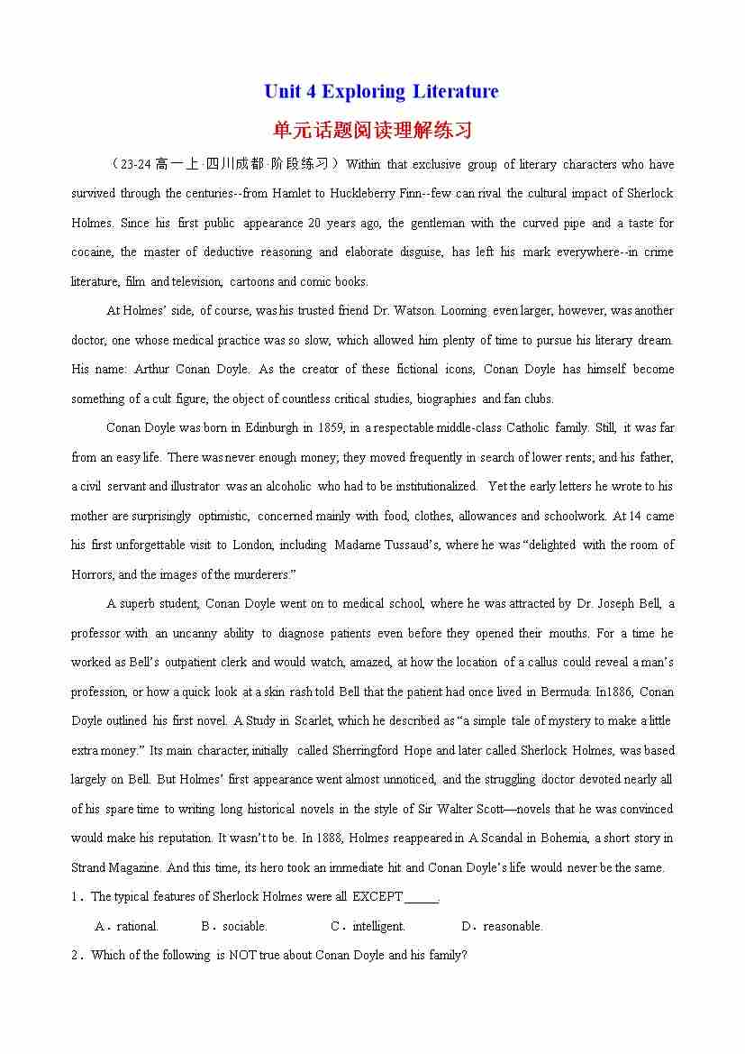 Unit 4 Exploring Literature 单元话题阅读理解练习(学生版)