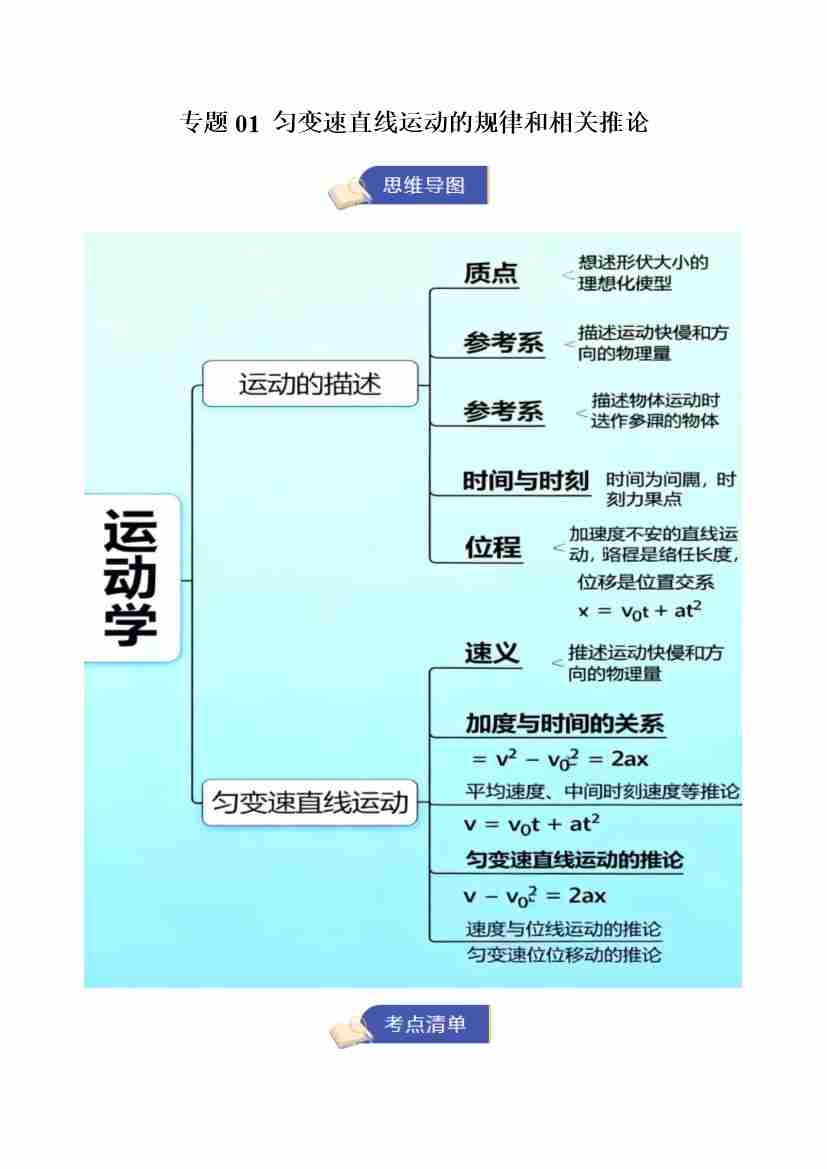 专题01 匀变速直线运动的规律和相关推论(期末复习知识清单)(原卷版)