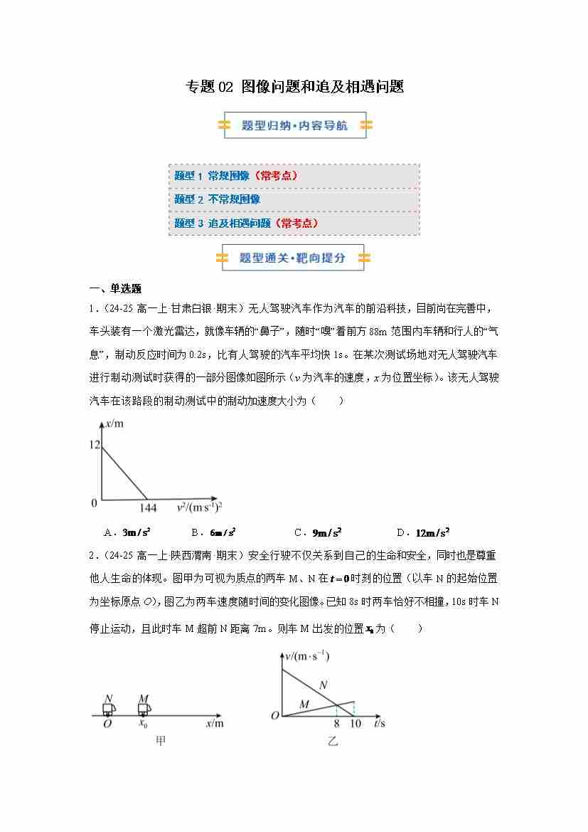 专题02 图像问题和追及相遇问题(期末专项训练)(原卷版)