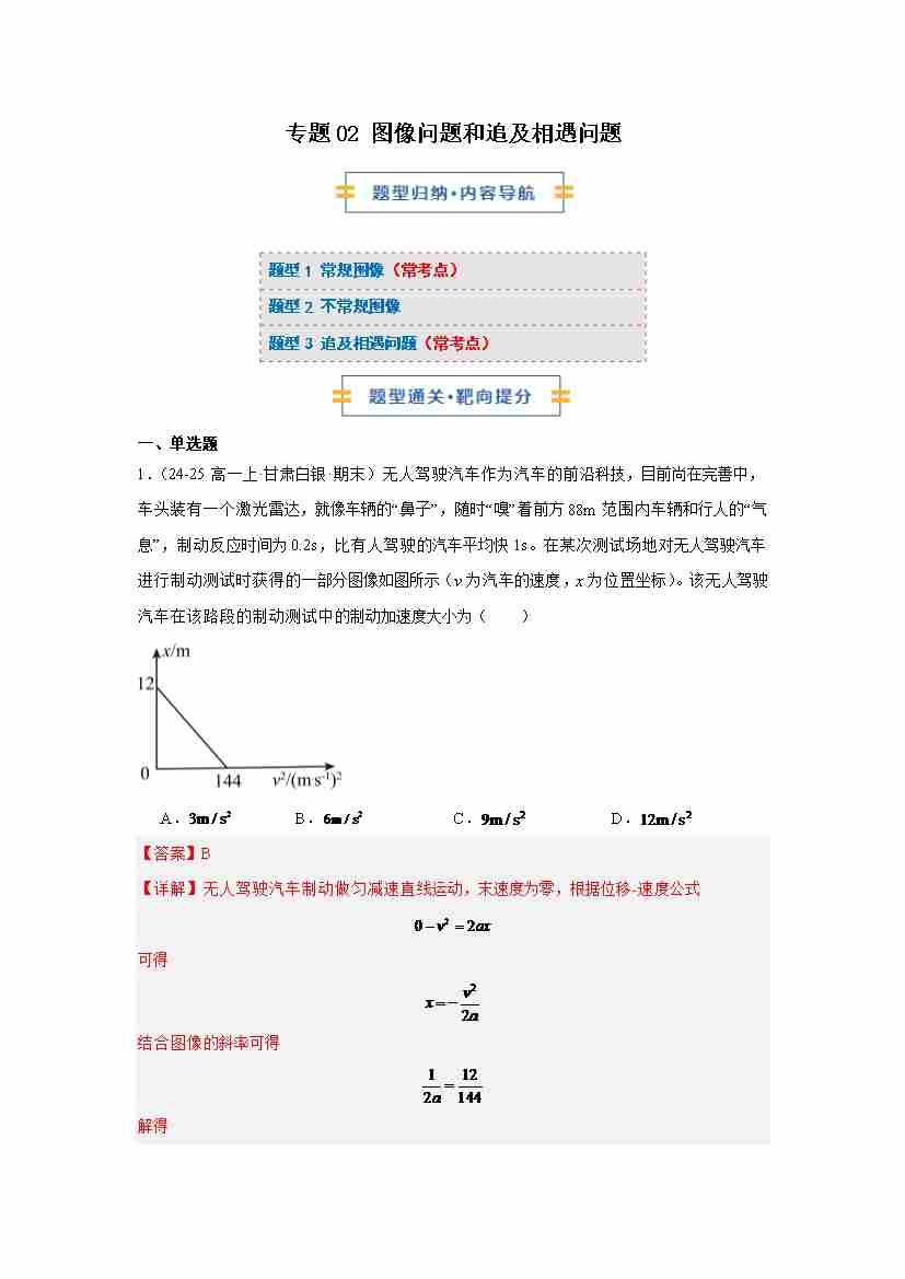专题02 图像问题和追及相遇问题(期末专项训练)(解析版)