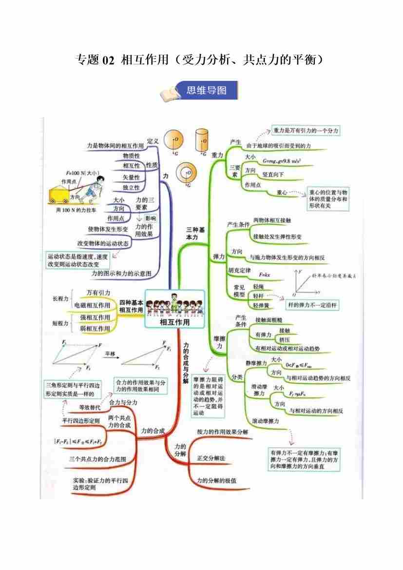 专题02 相互作用(受力分析、共点力的平衡)(期末复习知识清单)(原卷版)