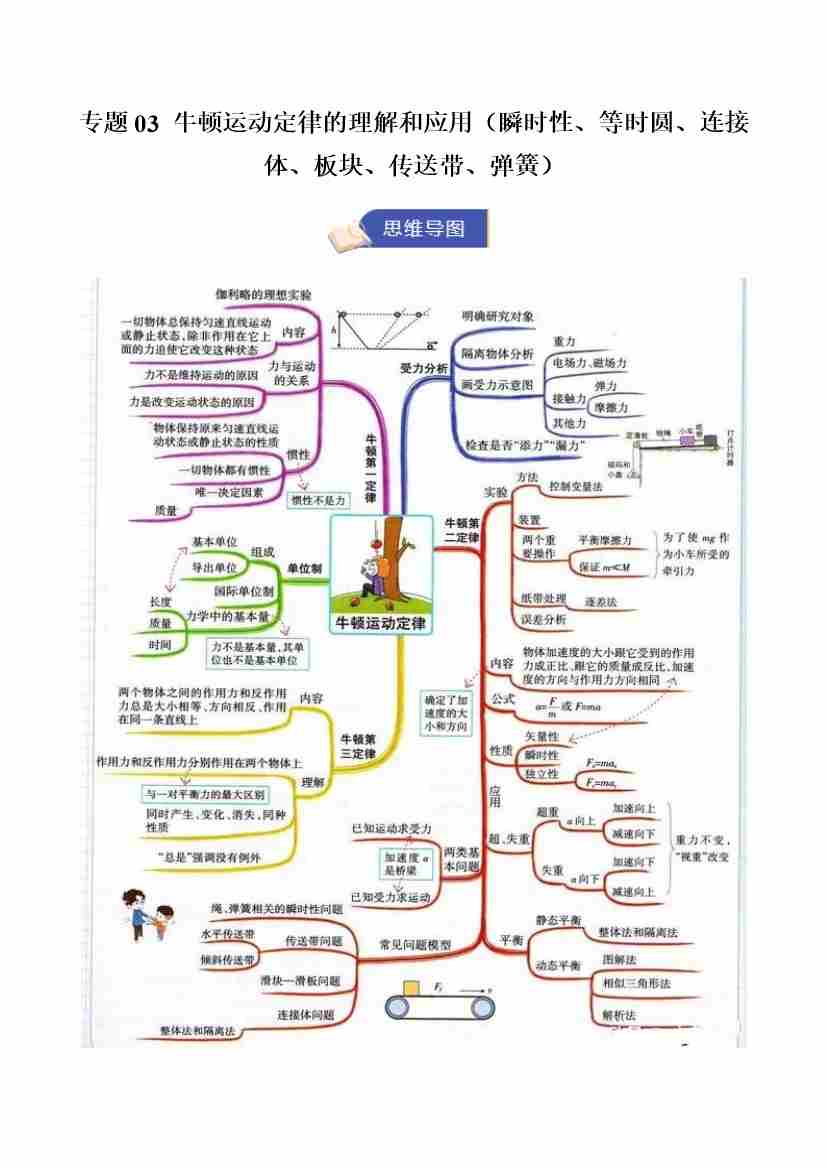 专题03 牛顿运动定律的理解和应用(瞬时性、等时圆、连接体、板块、传送带、弹簧)(期末复习知识清单)(原卷版)