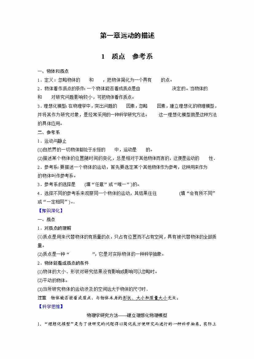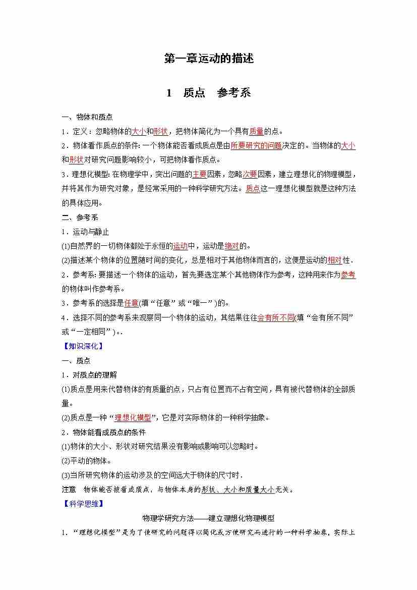 第一章运动的描述(学生版)