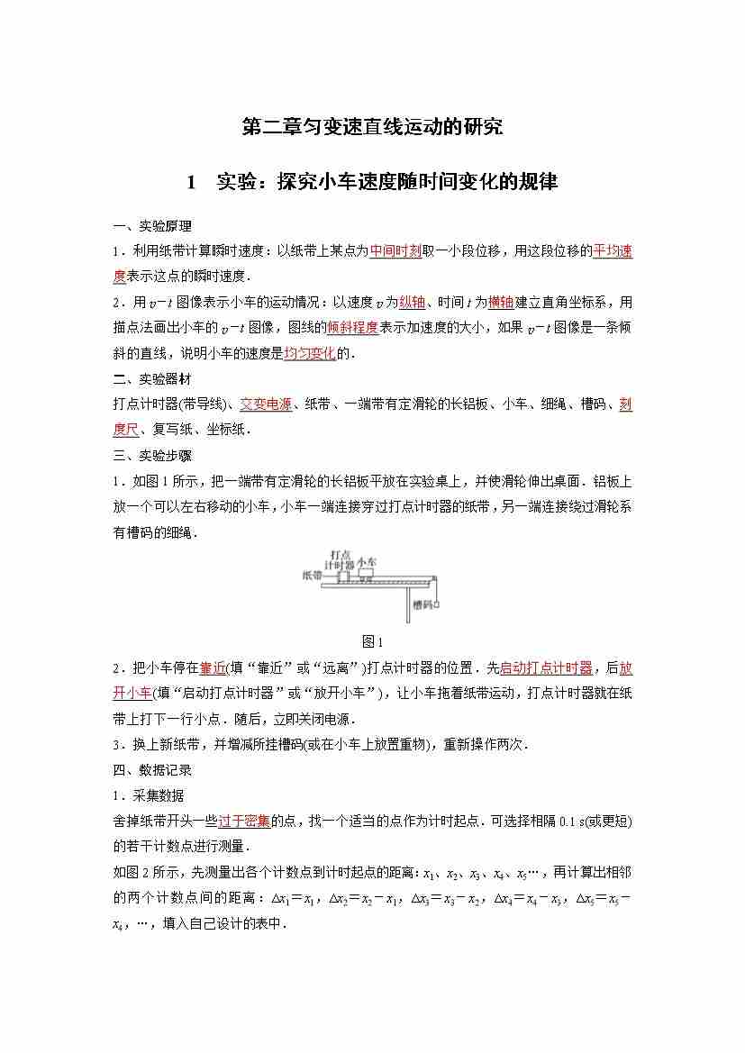 第二章匀变速直线运动的研究(学生版)