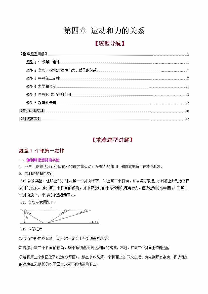 第四章 运动和力的关系(高效培优讲义)(学生版)