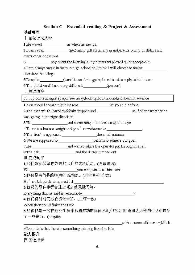 Unit 1 Extended reading & Project & Assessment 同步练习(2020)必修第二册