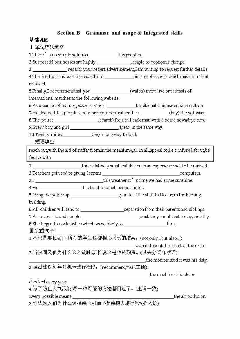 Unit 1 Grammar and usage & Integrated skills 同步练习(2020)必修第二册