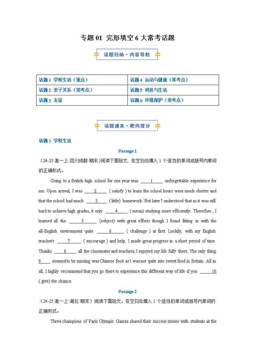考前押题03 语法填空6大常考话题(期末复习专项训练)(原卷版)
