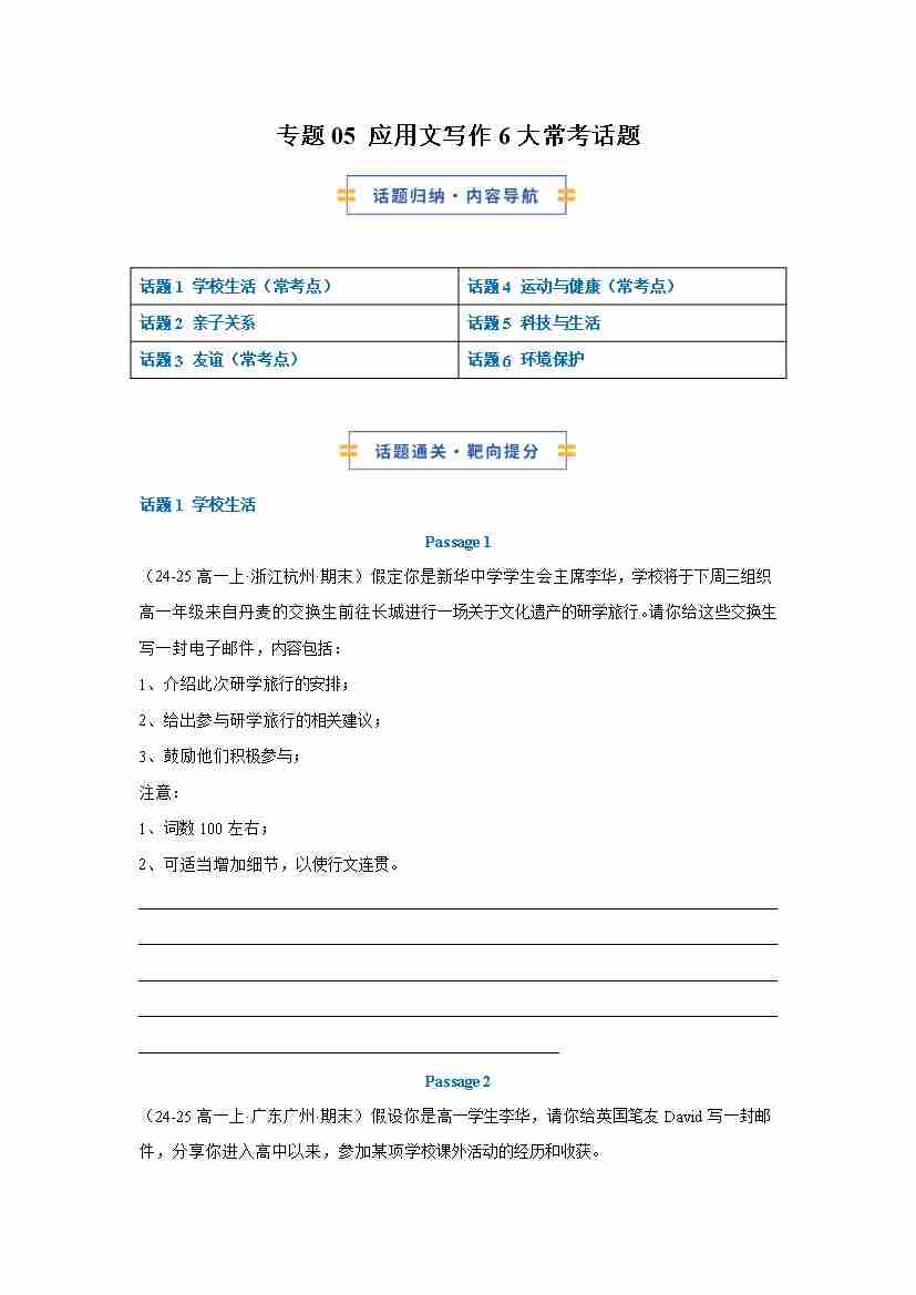 考前押题05 应用文写作6大常考话题(期末复习专项训练)(原卷版)