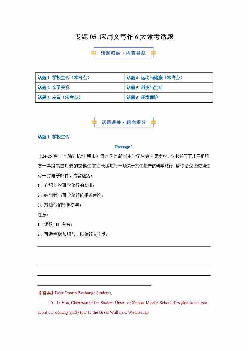 考前押题05 应用文写作6大常考话题(期末复习专项训练)(解析版)