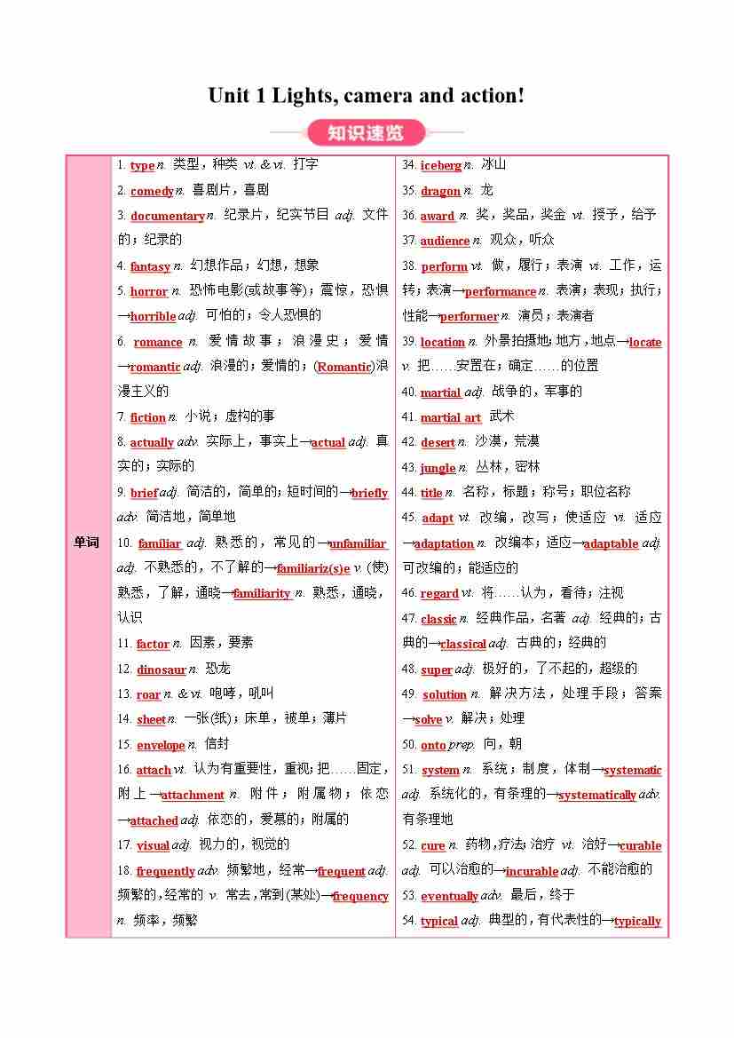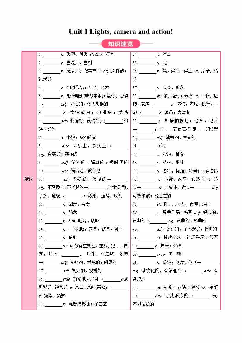 Unit 1 Lights, camera and action!(知识清单)(答案版)