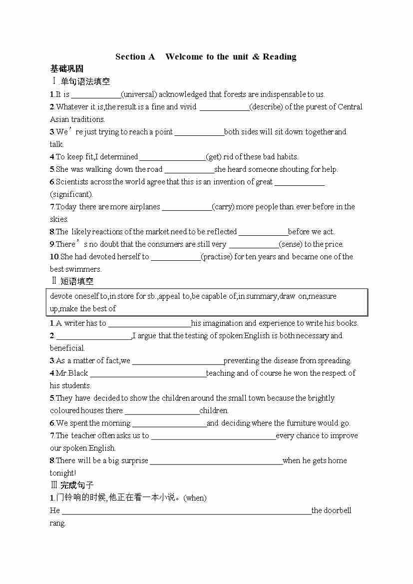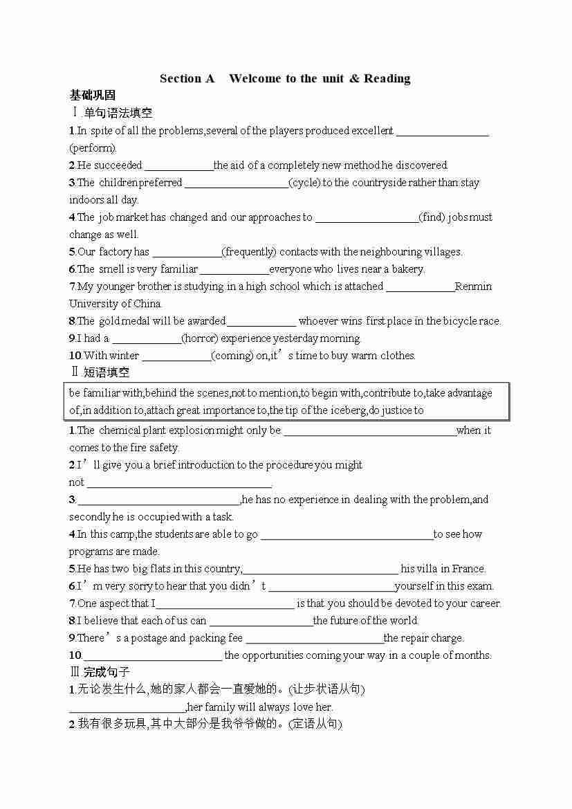 Unit 1 Welcome to the unit & Reading 同步练习(2020)必修第二册