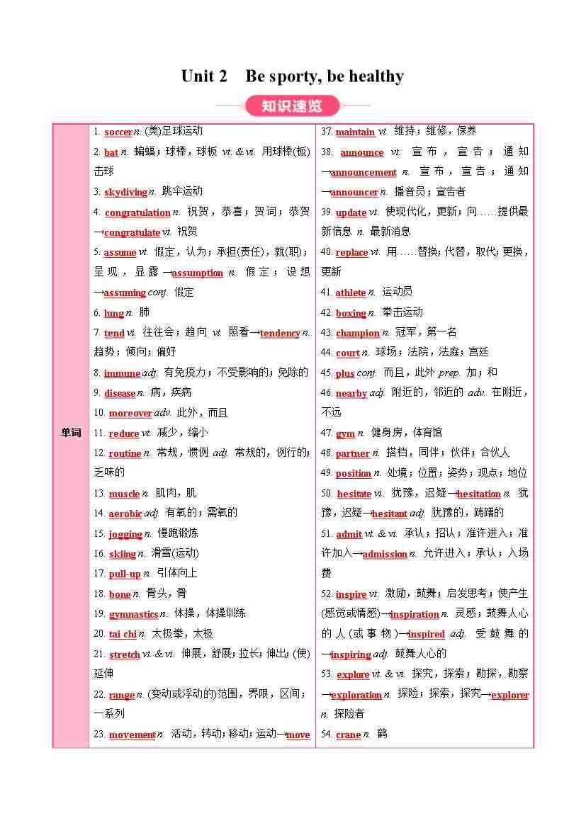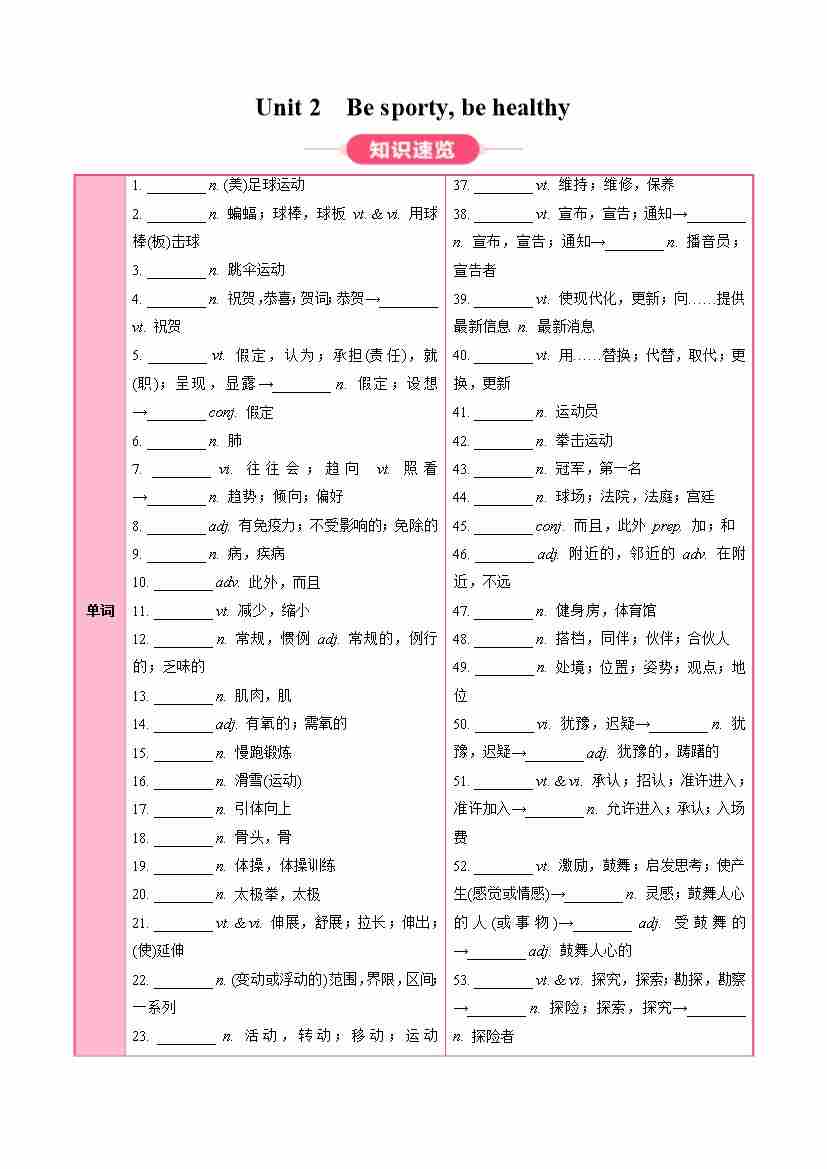 Unit 2 Be sporty, be healthy(知识清单)(答案版)