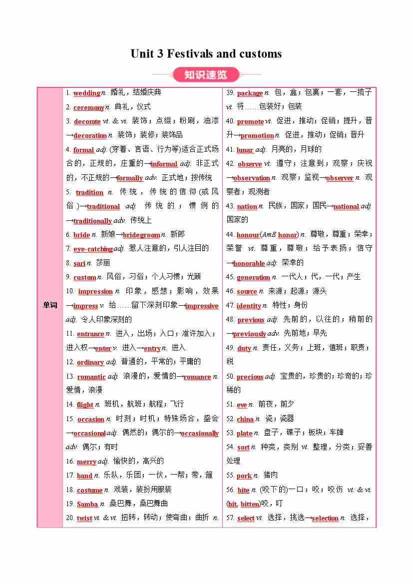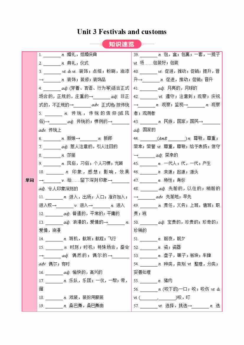 Unit 3 Festivals and customs(知识清单)(答案版)