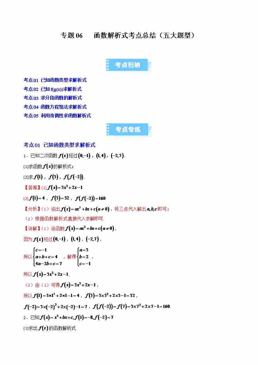 专题06 函数解析式考点总结(五大题型)(高效培优期中专项训练)(教师版)