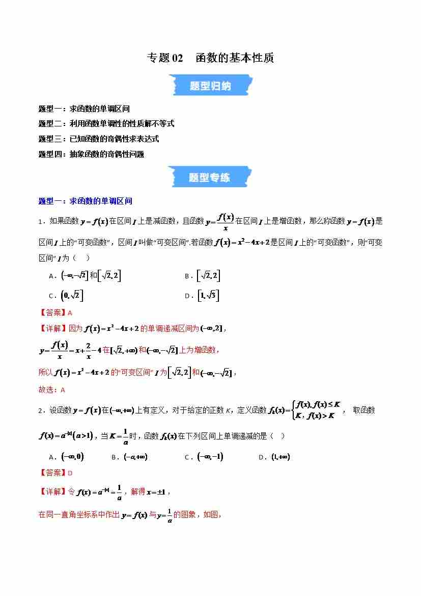 专题02 函数的基本性质的四大常考题型(高效培优专项训练)(教师版)