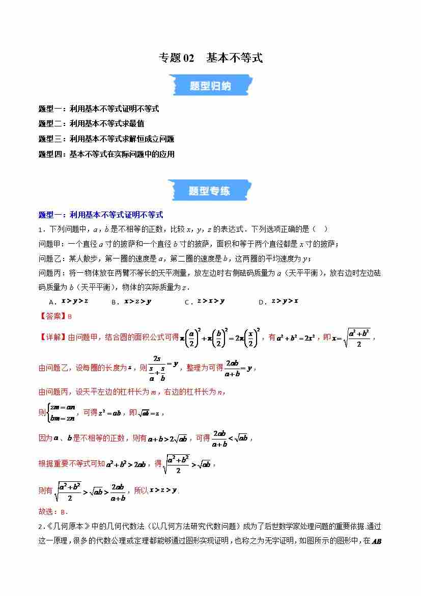 专题02 基本不等式的四大常考题型(高效培优专项训练)(教师版)