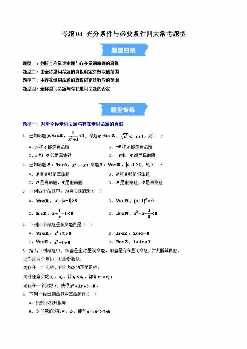 专题05 全称量词与存在量词四大常考题型(高效培优专项训练)(学生版)