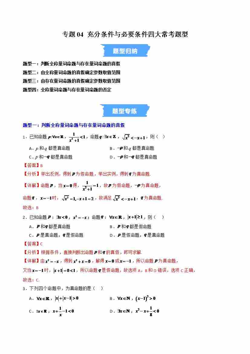 专题05 全称量词与存在量词四大常考题型(高效培优专项训练)(教师版)