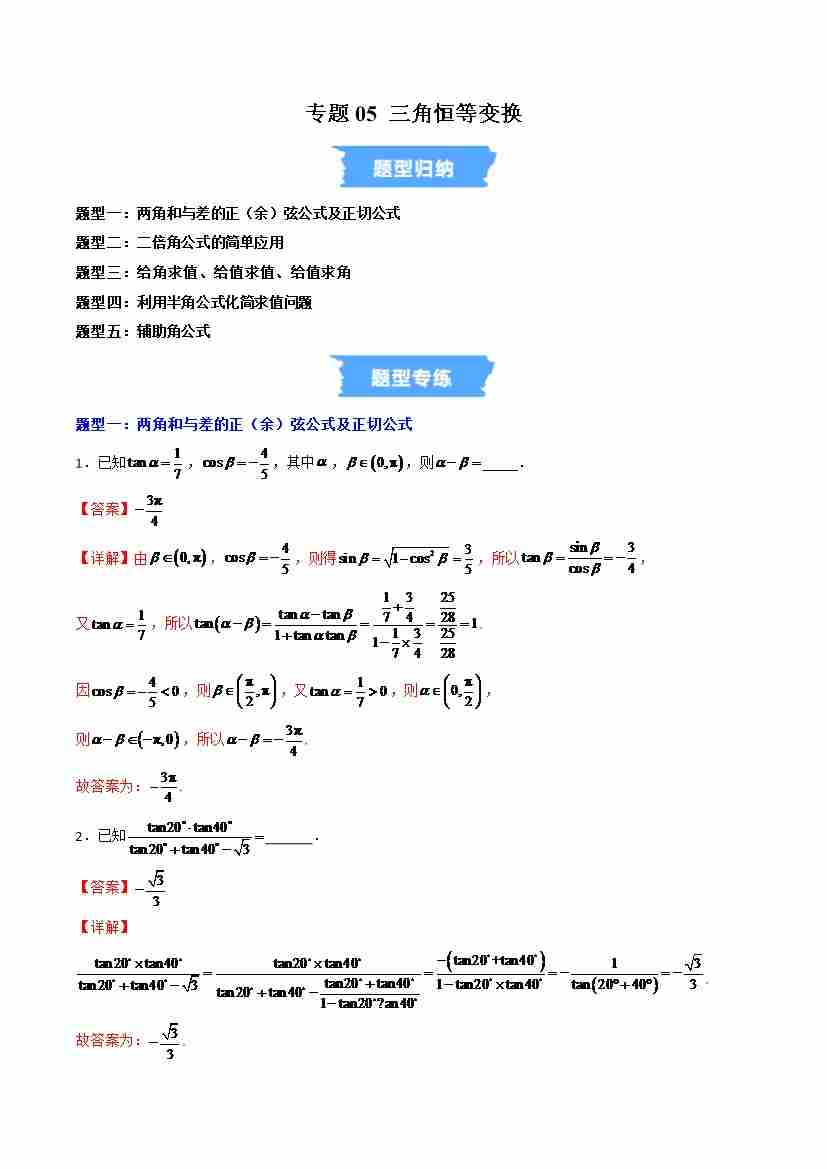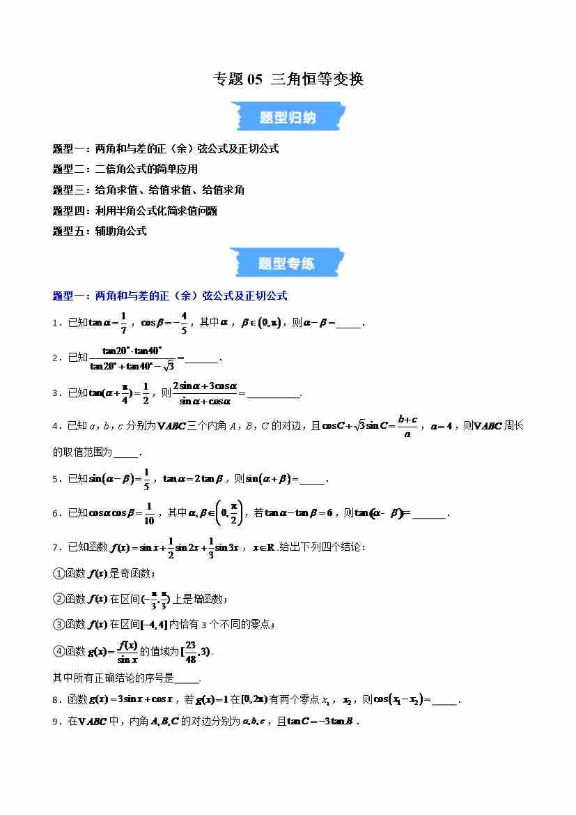 专题05三角恒等变换的五大常考题型(高效培优专项训练)(学生版)